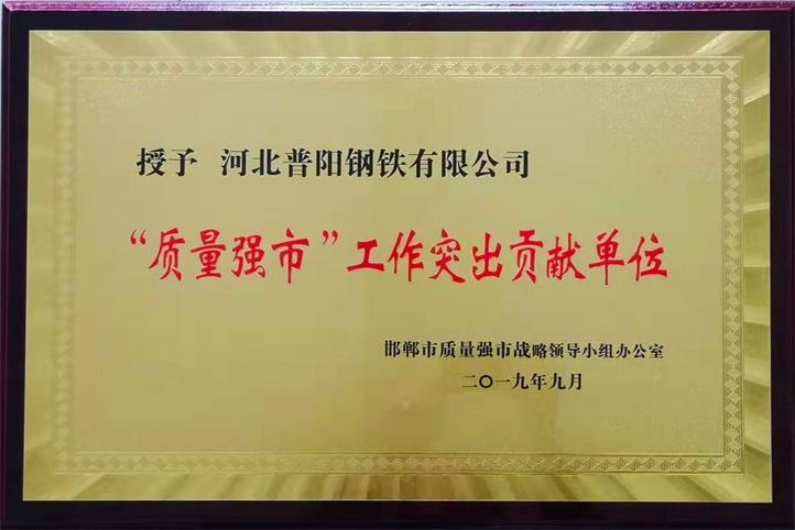 普陽(yáng)鋼鐵自建廠(chǎng)以來(lái),始終高度重視質(zhì)量管理工作,專(zhuān)注于為客戶(hù)提供高質(zhì)量、高附加值的精品鋼材,全面推行“窄幅工藝”和精益管理,通過(guò)“走出去,引進(jìn)來(lái)”“嚴管細管”等方法,持續不斷地優(yōu)化工藝技術(shù),穩定提升產(chǎn)品質(zhì)量,憑借卓越的質(zhì)量管理,先后榮獲“武安市長(cháng)質(zhì)量獎”“河北省政府質(zhì)量獎提名獎”“邯鄲市長(cháng)質(zhì)量獎”和“全國質(zhì)量獎鼓勵獎”等重量級榮譽(yù),有5項產(chǎn)品榮獲國家冶金產(chǎn)品實(shí)物質(zhì)量最高獎項“金杯獎”。 |