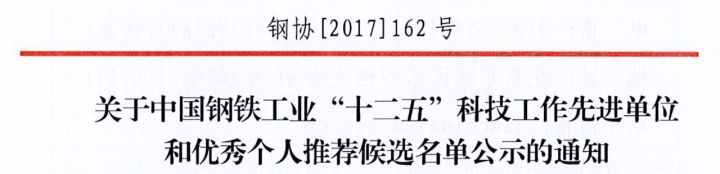 《通知》稱(chēng),沒(méi)有異議和異議處理完畢的候選單位和人員, 將提交專(zhuān)家委員會(huì )和鋼鐵工業(yè)科技大會(huì )籌備工作領(lǐng)導小組評選。