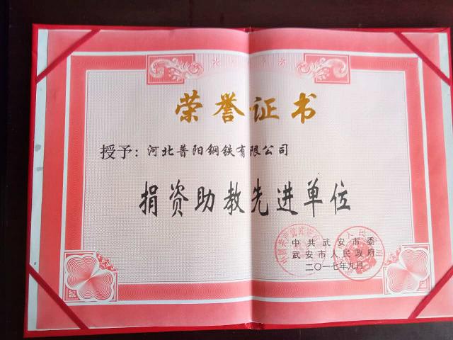 近日,中共武安市委,武安市人民政府為我公司頒發(fā)了“捐資助教先進(jìn)單位”榮譽(yù)證書(shū),我公司被評為2017年度“捐資助教先進(jìn)單位”。