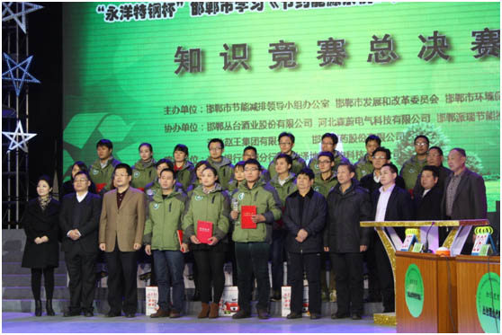 在12月12日結束的“永洋特鋼杯”邯鄲市學(xué)習《節約能源條例》和《減少污染物排放條例》知識競賽中,一路殺入決賽,取得了第一名的好成績(jì)。