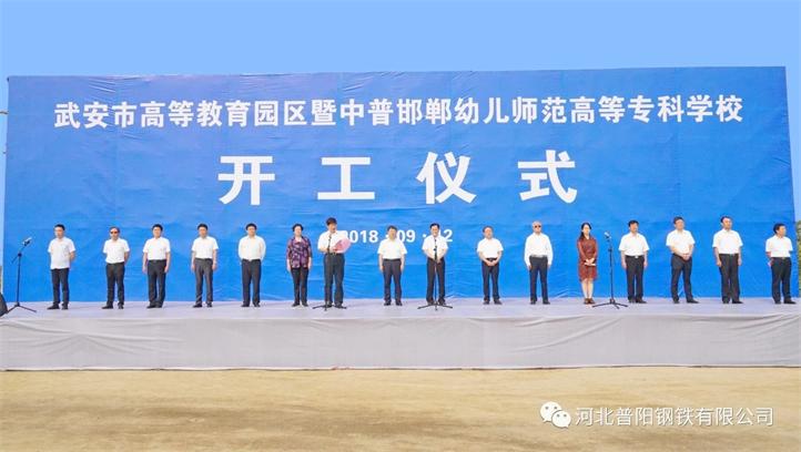9月12日上午,在武安市高等教育園區暨中普邯鄲幼兒師范高等專(zhuān)科學(xué)校項目建設工地隆重舉行了項目開(kāi)工典禮。市領(lǐng)導魏雪生、強延峰、路銘、邢乃玉、麻增禮、張麗英、高守剛、郝維斌、田俊勇、李衛峰、郝偉、李虎彥,我公司董事長(cháng)郭恩元、總經(jīng)理石躍強出席開(kāi)工典禮。